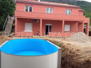 Ovalni modeli bazena su elegantniji i više “arhitektonski” – najčešći su izbor kod vila, apartmanskih objekata i zahtjevnijih korisnika. Međutim, važno je znati jedno: ne mogu se postavljati potpuno iznad zemlje. Zbog dva bočna zida koji im daju statiku, maksimalna nadzemna visina je 40 cm. Sve iznad toga bi dovelo do gubitka stabilnosti. Zato se ovalni bazeni montiraju isključivo kao polu-ukopani ili potpuno ukopani.