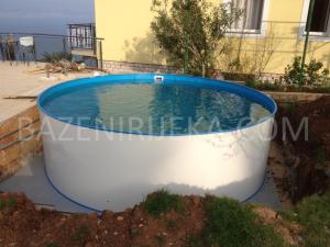 Okrugli modeli su najčešći i najjednostavniji za montažu. Bez obzira postavljate li ih na površinu, djelomično ukapate ili radite potpuno ukopani bazen – konstrukcija je stabilna i prilagodljiva. Dimenzije variraju od 3,0 do 10 metara u promjeru, uz dubinu stijenke od 120 ili 150 cm. Ako imate gotovu betonsku podlogu i pripremljenu tehniku, bazen je moguće kompletno montirati u jednom danu – uključujući liner, filter, pumpu, skimer i sve pripadne priključke.