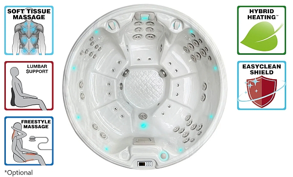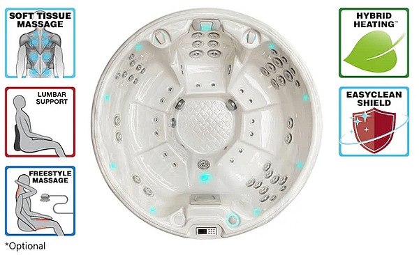 Recharge model uključuje ekskluzivni sustav Dual Source Heating™, koji koristi toplinu trenja vode za dodatno grijanje. Ova inovacija značajno doprinosi energetskoj učinkovitosti jer smanjuje potrebu za klasičnim grijačima, a samim time i potrošnju električne energije. Na taj način korisnici dugoročno štede, dok se temperatura vode održava konstantnom i ugodnom – bez dodatnih troškova. Idealan je izbor za one koji žele elegantan, učinkovit i jednostavan hidromasažni bazen za cijelu obitelj.