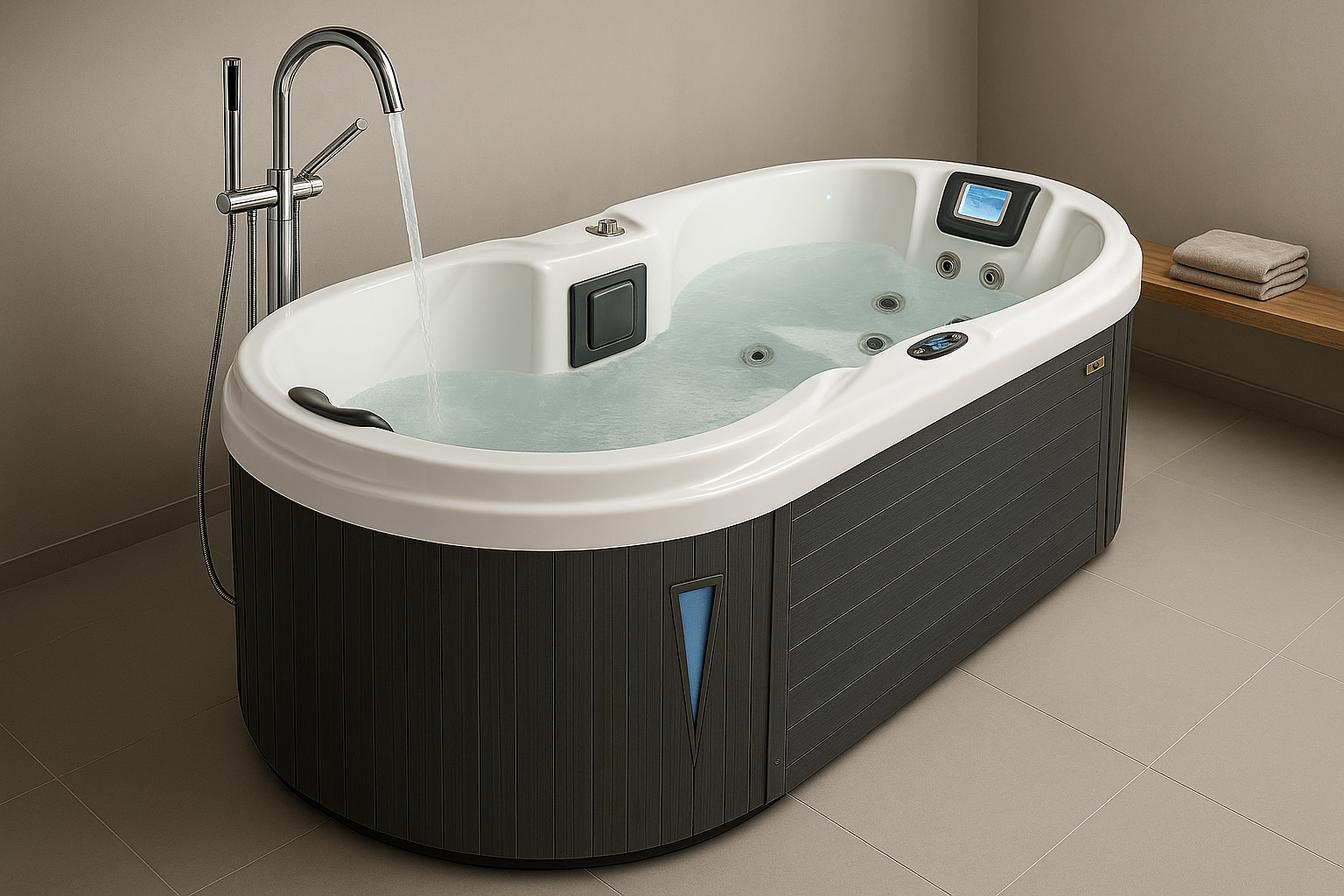Hidromasažni bazen Bliss savršen je izbor za parove koji žele uživati u vrhunskoj relaksaciji, ali nemaju previše prostora. Ovaj jacuzzi za dvoje ima dimenzije 225 x 100 cm omogućuje lako uklapanje u manje prostore poput soba, stanova, terasa ili manjih vrtova. Bliss je pravi dokaz da veličina nije prepreka luksuzu – dapače, ova “jacuzzi-kada” donosi maksimalnu funkcionalnost i udobnost, čak i u ograničenom prostoru.