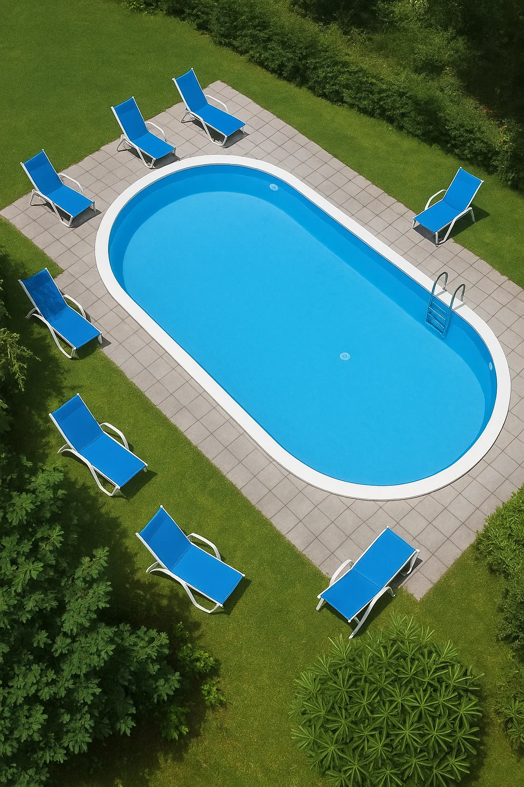 ℹ️ NAPOMENA: Svi ovalni modeli, uključujući ovaj, zahtijevaju minimalne građevinske radove, poput pripreme ravne podloge i učvršćivanja bočnih zidova radi stabilnosti konstrukcije.