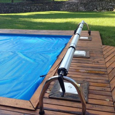 Ručni plutajući termo pokrivač za bazene 4m’ x 8 m’ za ljetni period sa aluminijskom teleskopskom cijevi od Ø 95 – 100 te kotačima za mobilnost na jednoj strani, ukupne kvadrature od 32 m2.