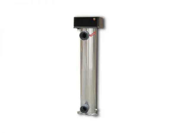 UV20 je sterilizator bazenske vode na principu UV-C zračenja. Uređaji su namijenjeni za bazene volumena do 20-30 m3. Jednostavan za ugradnju i održavanje. UV-C zračenje eliminira bakterije, viruse i druge primitivne organizme, te spriječava njihovo razmnožavanje. Uređaj je u mogućnosti reducirati količinu kloramina u vodi za 50-60%. Prvenstveno se koristi u kombinaciju sa klasičnim dezinfekcijskim uređajima na bazi klora pri čemi se potrošnja klora smanjuje za 40-60%. PRotok kroz sterilizator 12 m3/h, priključak 1 1/2″, UV lampe niskotlačne, High Output 1 x 55 W, doza zračenja 30 mJ/cm2, životni vijek lampe 13.000 sati, maximalni radni tlak 3 bar.