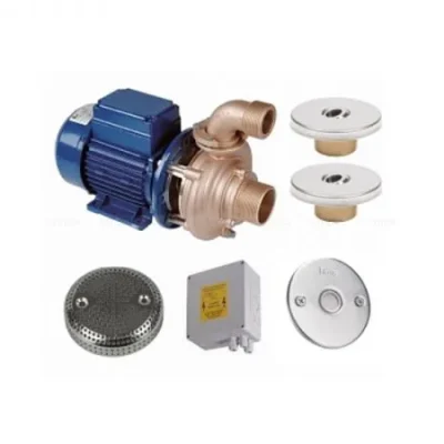 Završni elementi hidromasaže STANDARD 2 mjesta koji se sastoji od 2 inox mlaznice, piezo prekidača, masažne pumpe 0,5 kW, 230V, te potrebnim spojnim priborom.